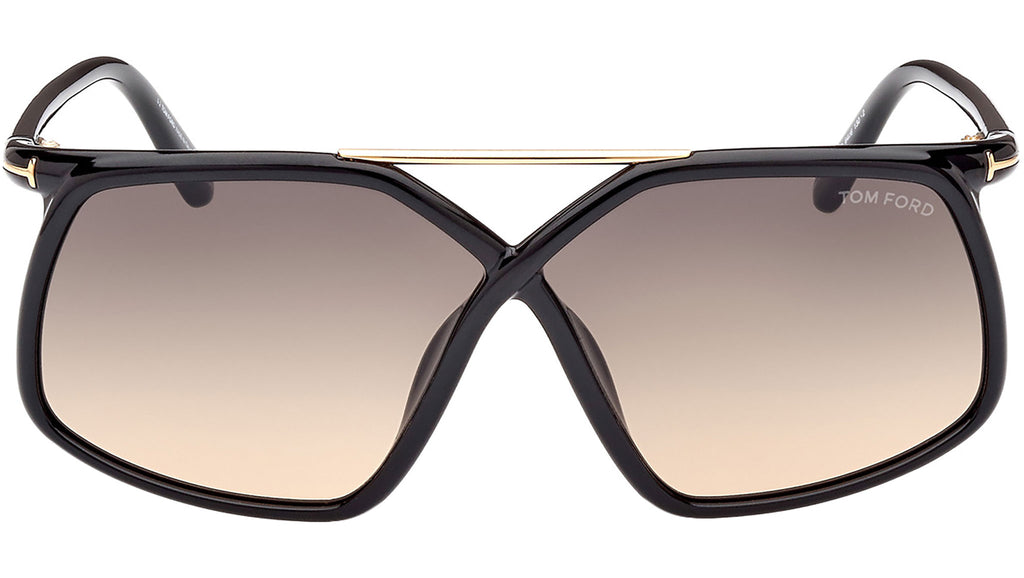 Occhiali da sole Tom Ford Meryl modello FT1038 in nero lucido / oro, codice colore 01B con lenti color blu grigio sfumato marrone. L'ultima collezione di occhiali Tom Ford trae ispirazione da due concetti distinti: minimalismo raffinato, che mette in risalto design essenziali, forme senza tempo, materiali premium; e combinazioni preziose, che mostrano miscele innovative di acetato e metallo, soluzioni di design inaspettate e progressi tecnologici. Esprimendosi in silhouette audaci ed eleganti, la collezione presenta occhiali caratterizzati da squisite miscele di acetato e metallo, espressione di design distintivi e immediatamente riconoscibili. Elementi iconici come il logo in metallo a T e il famoso simbolo dell'infinito adornano le montature, mentre gli stili più classici vengono reinventati in palette di colori freschi che riflettono le ultime tendenze della moda.